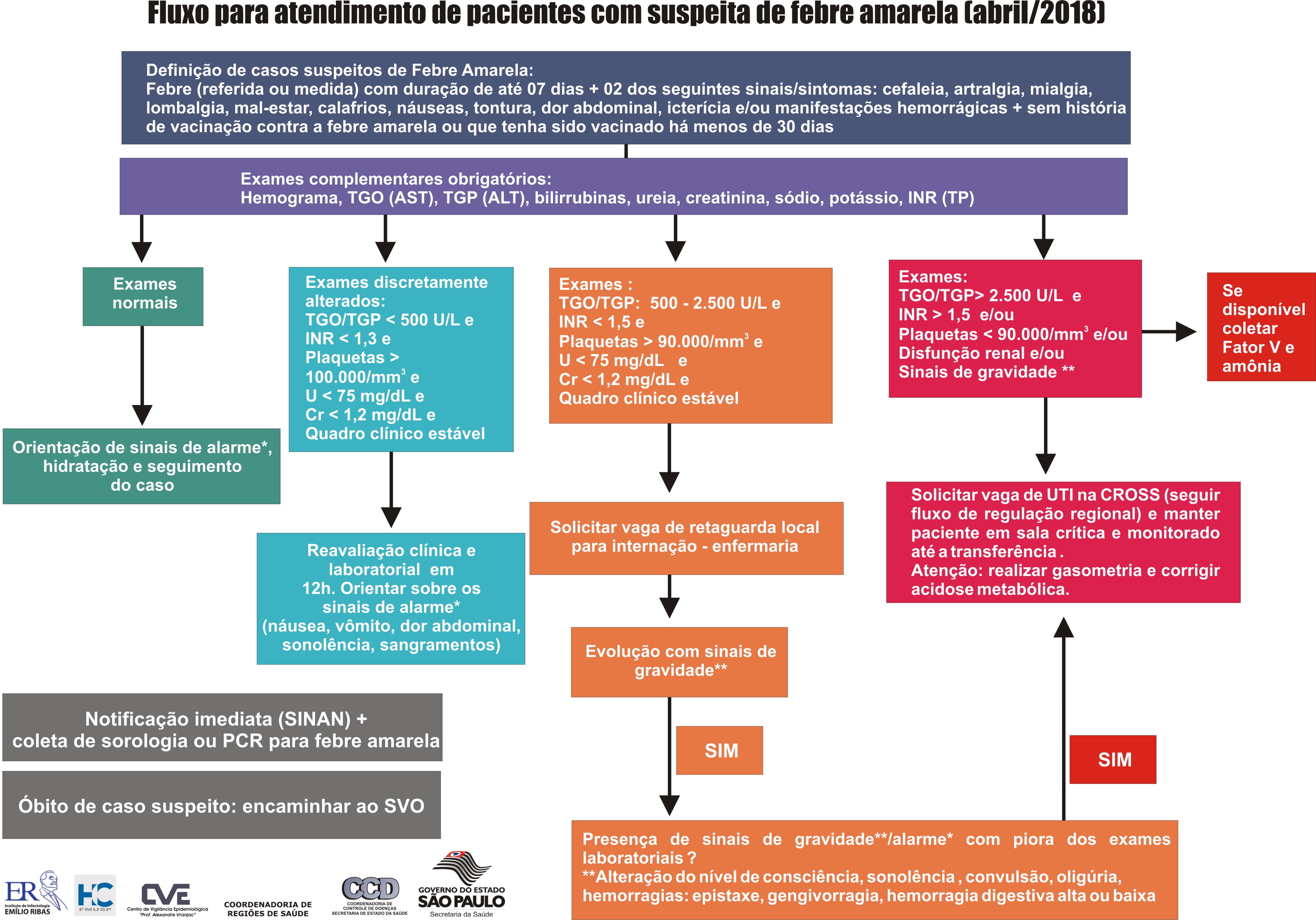 Após reunião entre as Coordenadorias de Controle de Doenças e Regiões de Saúde (CCD e CRS), o Departamento Regional de Saúde de Registro DRS, médicos do Hospital das Clínicas, ficou definido o protocolo de atendimento para os casos suspeitos de febre amarela no Vale do Ribeira. Esse documento organiza o encaminhamento dos casos, segundo sintomas de gravidade e exames laboratoriais.
