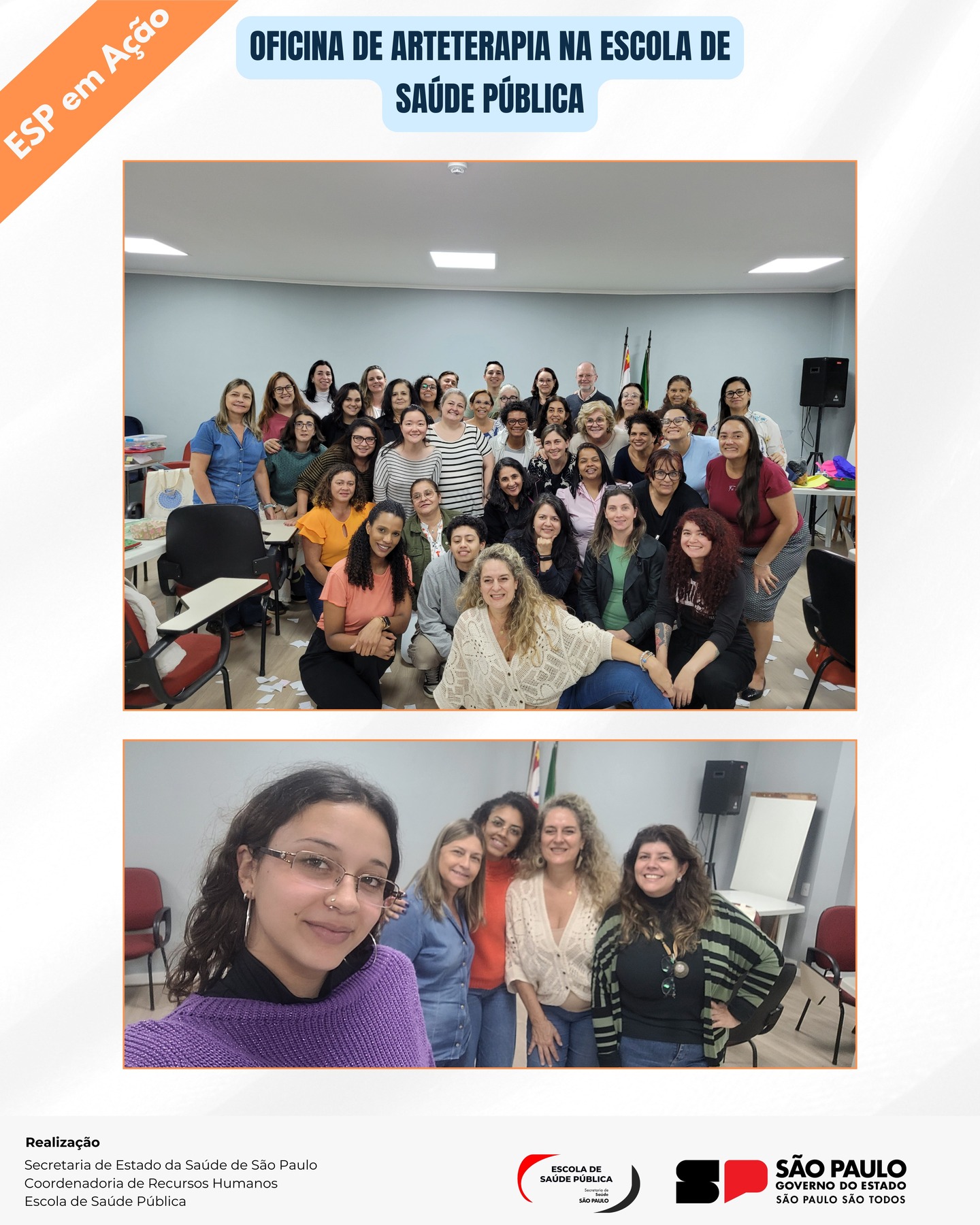 No dia 10 de novembro, a Escola de Saúde Pública, que integra a Coordenadoria de Recursos Humanos da Secretaria de Estado da Saúde, realizou uma inspiradora oficina de Arteterapia com a professora Elaine Lach.