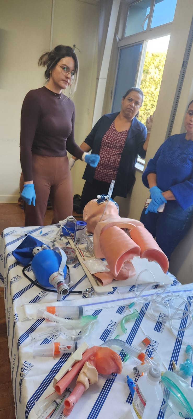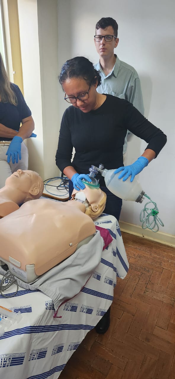Conduzido pela enfermeira Edna Duarte Ferreira, o curso abordou temas essenciais como ressuscitação cardiopulmonar (RCP), controle de hemorragias, atendimento a ferimentos leves, desmaios, convulsões, hipoglicemia, diabetes e parada cardiorrespiratória, entre outros. A capacitação foi marcada por simulações realísticas, com uso de manequins e demonstrações práticas, permitindo aos participantes aplicar o aprendizado em cenários simulados.
