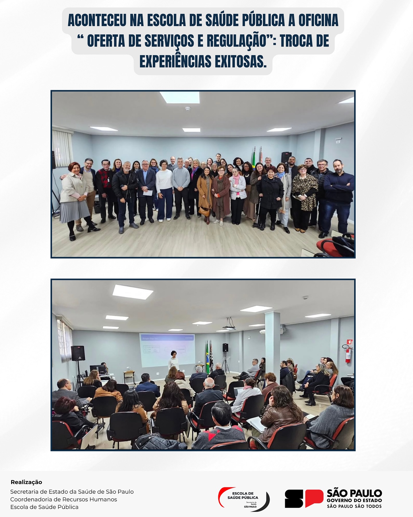 Ainda está prevista a realização de mais uma oficina para dezembro de 2026. Servidores em cargos de direção que ainda não participaram devem acompanhar os comunicados enviados por e-mail institucional e pela plataforma de cursos da SES/SP.