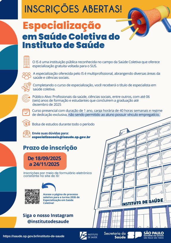 • Especialização Profissional aberta a graduados em cursos vinculados à área da saúde e afins, com o objetivo de qualificar e/ou aprofundar a capacitação para o exercício profissional;