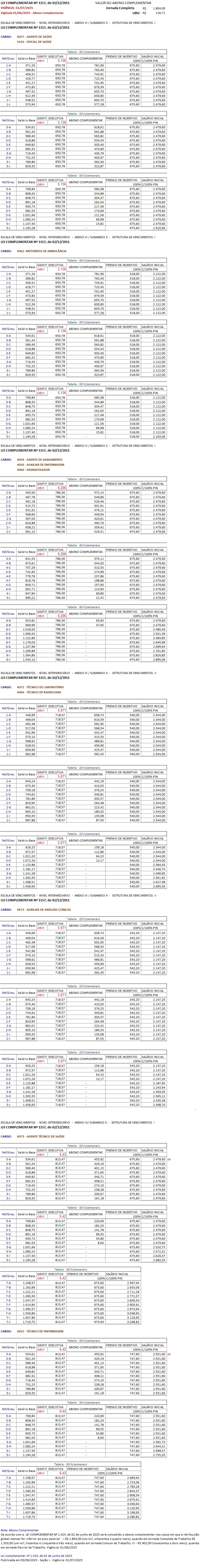 TABELA DE CARGOS E SALÁRIOS
