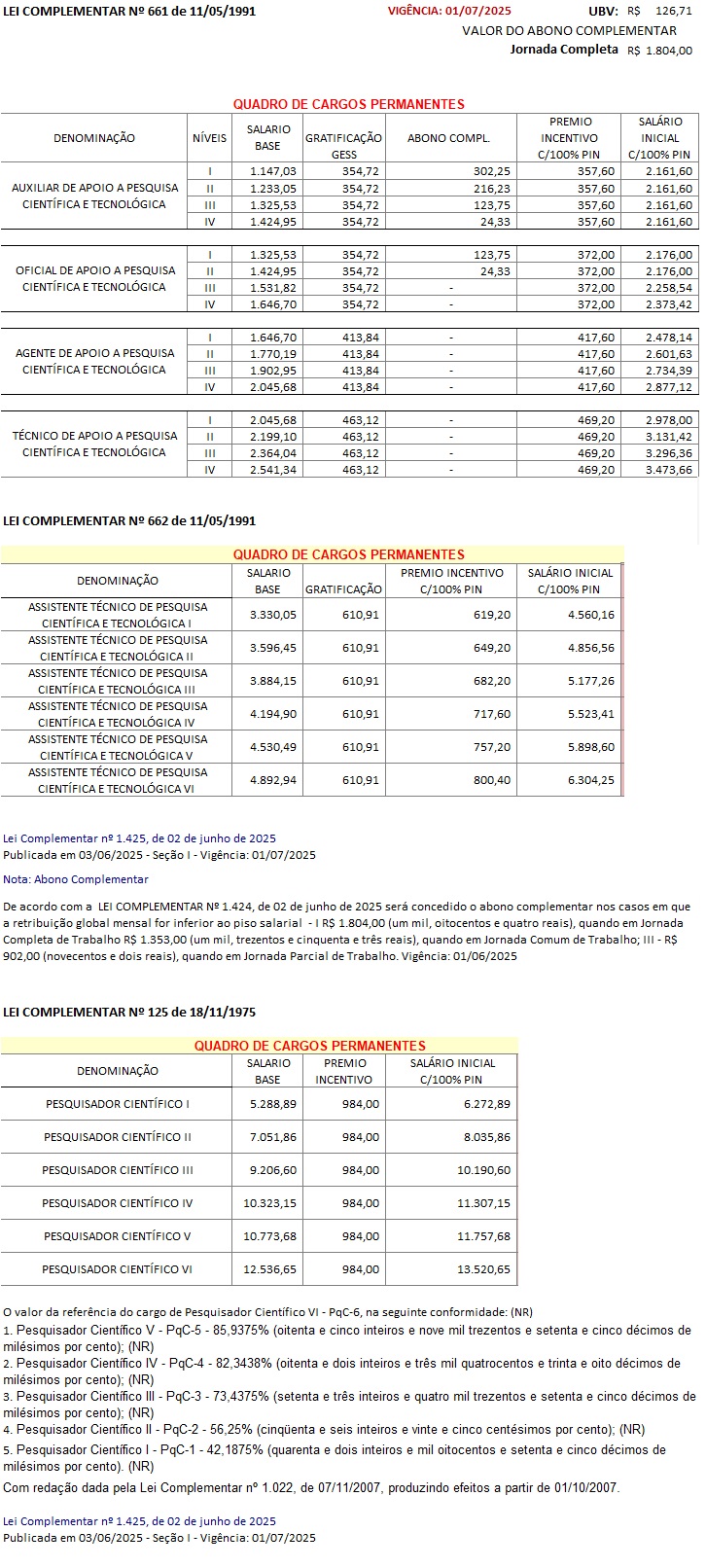 Lei Complementares nº 125/75, 661 e 662/91 - ÁREA PESQUISA