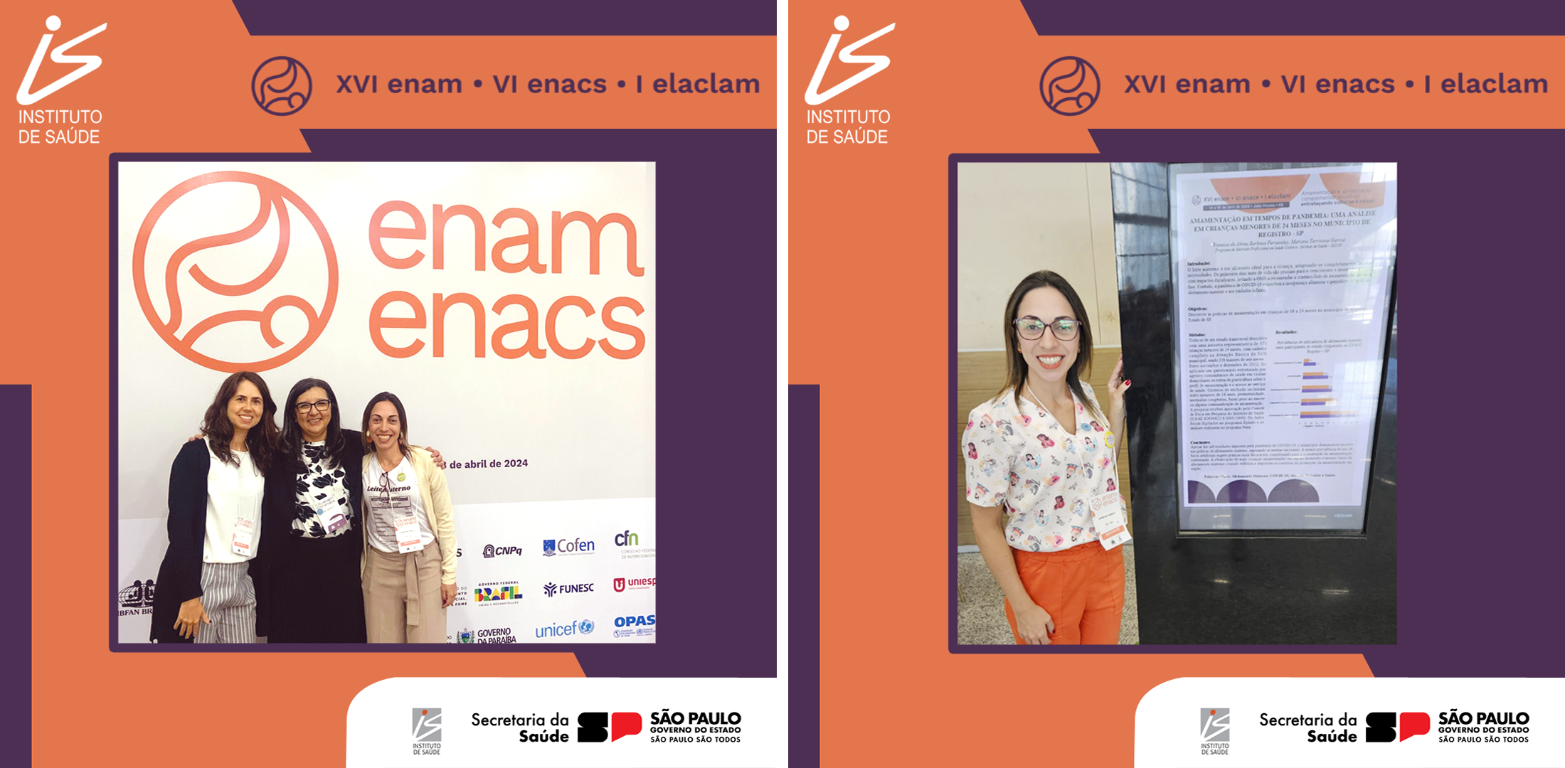 Nos eventos, foram apresentados trabalhos por Mestre e Docentes do Programa de Mestrado Profissional em Saúde Coletiva do Instituto de Saúde (IS). Vanessa Fernandes, formada pelo Instituto de Saúde, apresentou o estudo com co-autoria da docente Mariana Tarricone Garcia, fruto de sua dissertação de mestrado, que explorou o tema "Amamentação em tempos de pandemia: uma análise em crianças menores de 24 meses no município de Registro - SP".