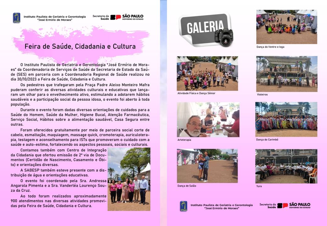 As ações ocorreram nos dias 08/12/2023 e 12/12/2023 estimulando a mudança do comportamento, nos livrando de preconceitos, combatendo o etarismo e tendo o cuidado em todas as fases da vida.