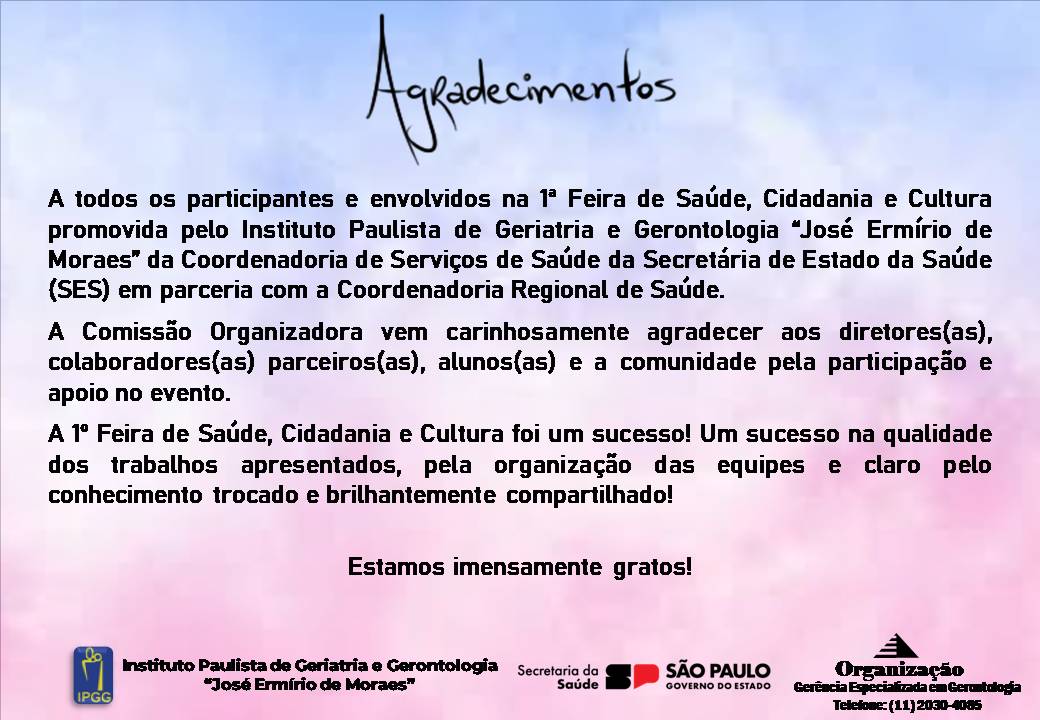 A ação foi fruto do empenho da Gerência Especializada em Gerontologia e a solidariedade dos colaboradores deste Instituto.
